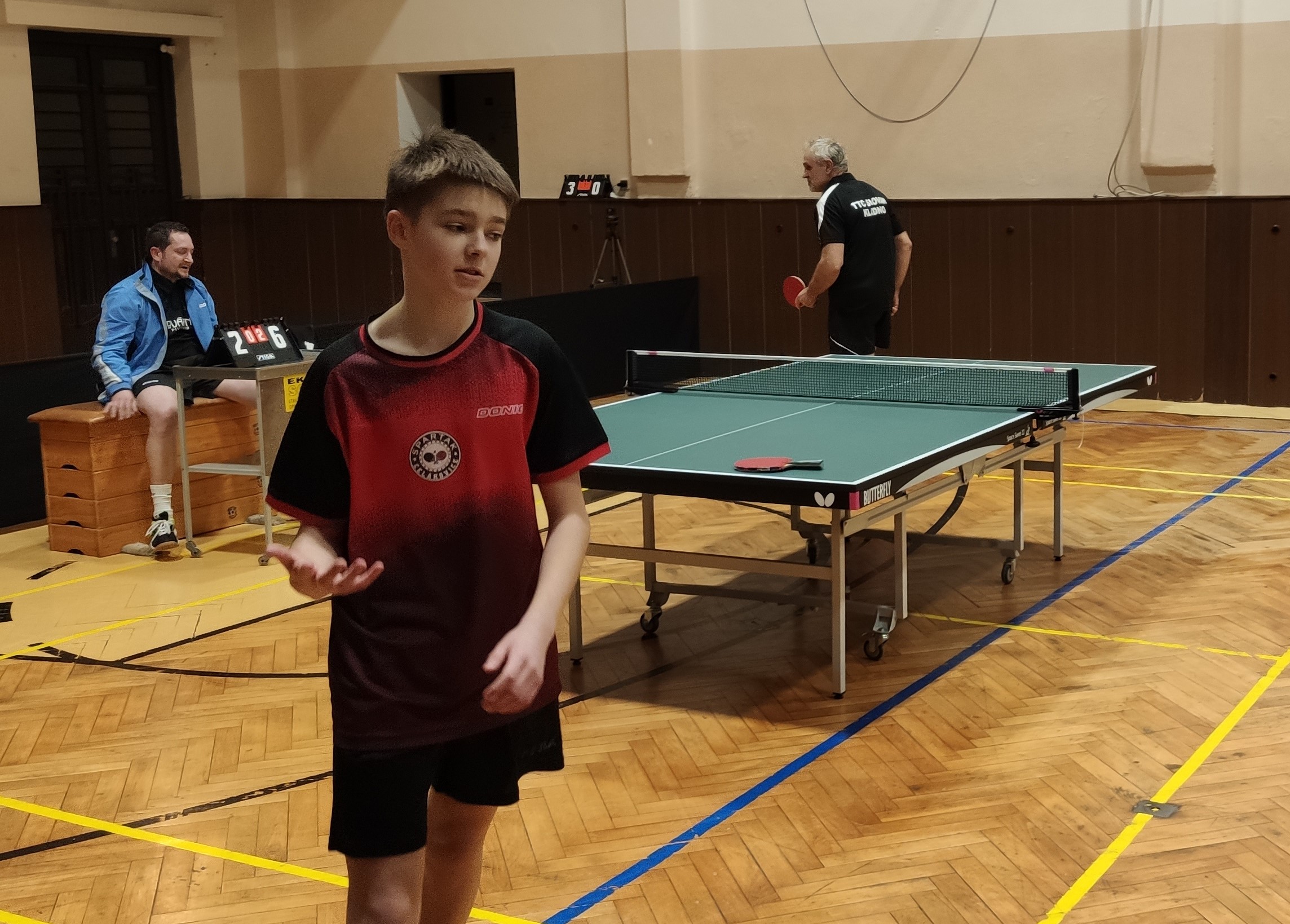Po špatném začátku jsme prohrávali až 3-5, než k obratu zaveleli David Kurel a Jirka Mlejnek vyhranými pětisetovými zápasy. Série 7 výher v řadě nás dotáhla až k výhře 10:5. Body: Iglo 4, Mlejnek 2, Kurel 2, Marat 1, čtyřhra